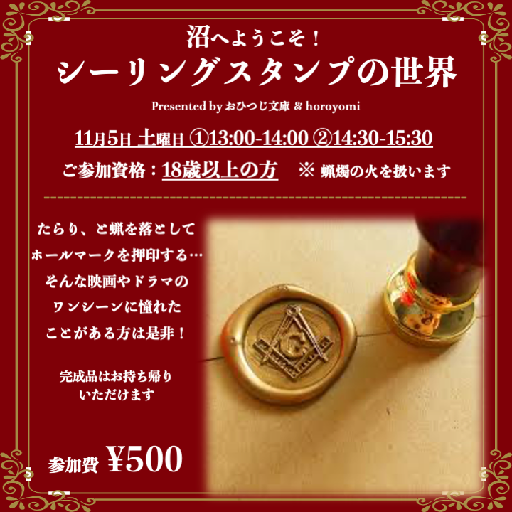たらり、と蝋を垂らしてホールマークを押しつけ